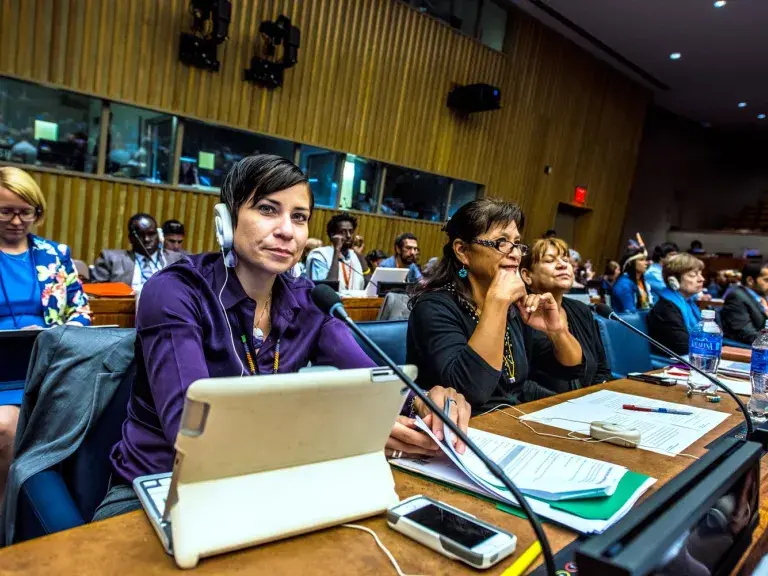 Más de 150 naciones indígenas, organizaciones y coaliciones de mujeres nativas se unieron y trabajaron durante dos años para ganar apoyo para cuatro decisiones para avanzar los derechos de los pueblos indígenas en la ONU: