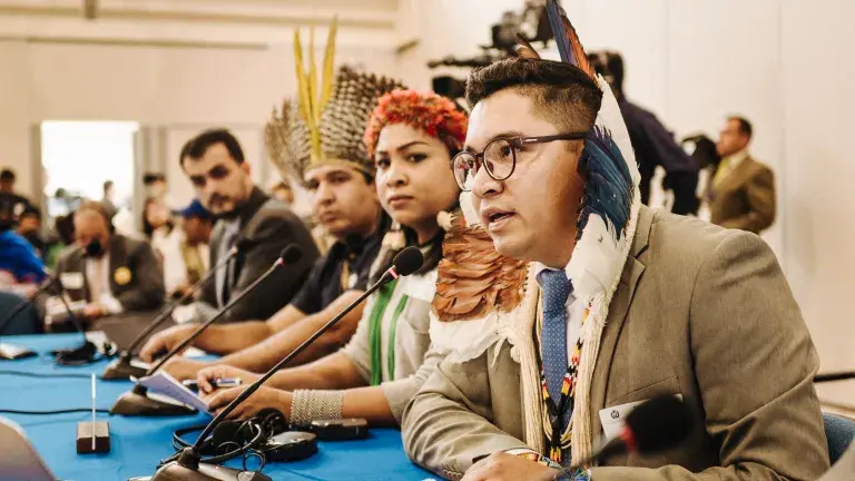 Históricamente, Brasil ha servido como modelo que demuestra el potencial para reducir la deforestación al fortalecer los derechos legales de la tierra de los pueblos indígenas. Según la constitución de Brasil de 1988, los derechos indígenas están explícitamente protegidos. Sin embargo, con demasiada frecuencia, esas leyes existentes son ignoradas. En los últimos años, en medio de la agitación política y económica en Brasil, los pueblos indígenas de la selva amazónica de Brasil han estado luchando contra desafíos y amenazas cada vez más severos para sus derechos de usar, administrar y administrar sus tierras. Por supuesto, estas amenazas no son nuevas; Los pueblos indígenas y las tierras indígenas han estado en riesgo durante mucho tiempo y bajo presión en Brasil y en todas las Américas, de los actores del sector público y privado. Sin embargo, hay indicadores concretos de que la situación está empeorando cada vez más. Con los líderes del país trabajando para expandir la agricultura y otros desarrollo en tierras indígenas y debilitar las instituciones y regulaciones que los protegen, la tala ilegal y otras actividades e invasiones en tierras indígenas están alimentando un aumento en la violencia y la devastación ambiental.